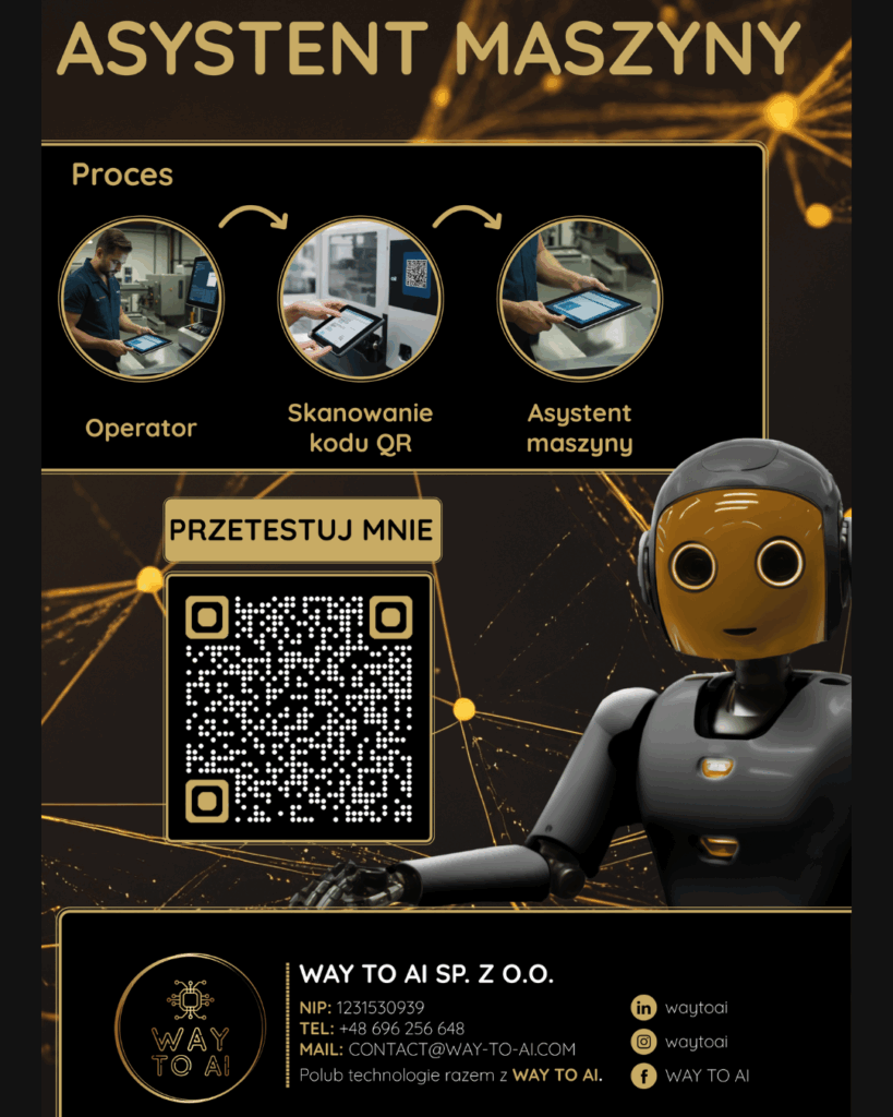 Machine Assistant has met with great interest, especially among manufacturing companies looking for tools for automation, process optimization and effective employee onboarding. Below we present a poster from which visitors could scan the QR code and check in practice how the solution works on their own smartphone.